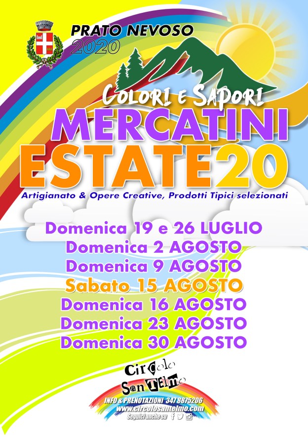 MERCATINI ESTIVI 2020 – Colori & Sapori – Ecco la Locandina Ufficiale Rispondi Ci siamo finalmente! Ripartono i Mercatini Estivi, ecco tutte le date per l’Estate 2020 ! Condividi: Fai clic per condividere su X (Si apre in una nuova finestra) X Fai clic per condividere su Facebook (Si apre in una nuova finestra) Facebook Mi piace Caricamento...