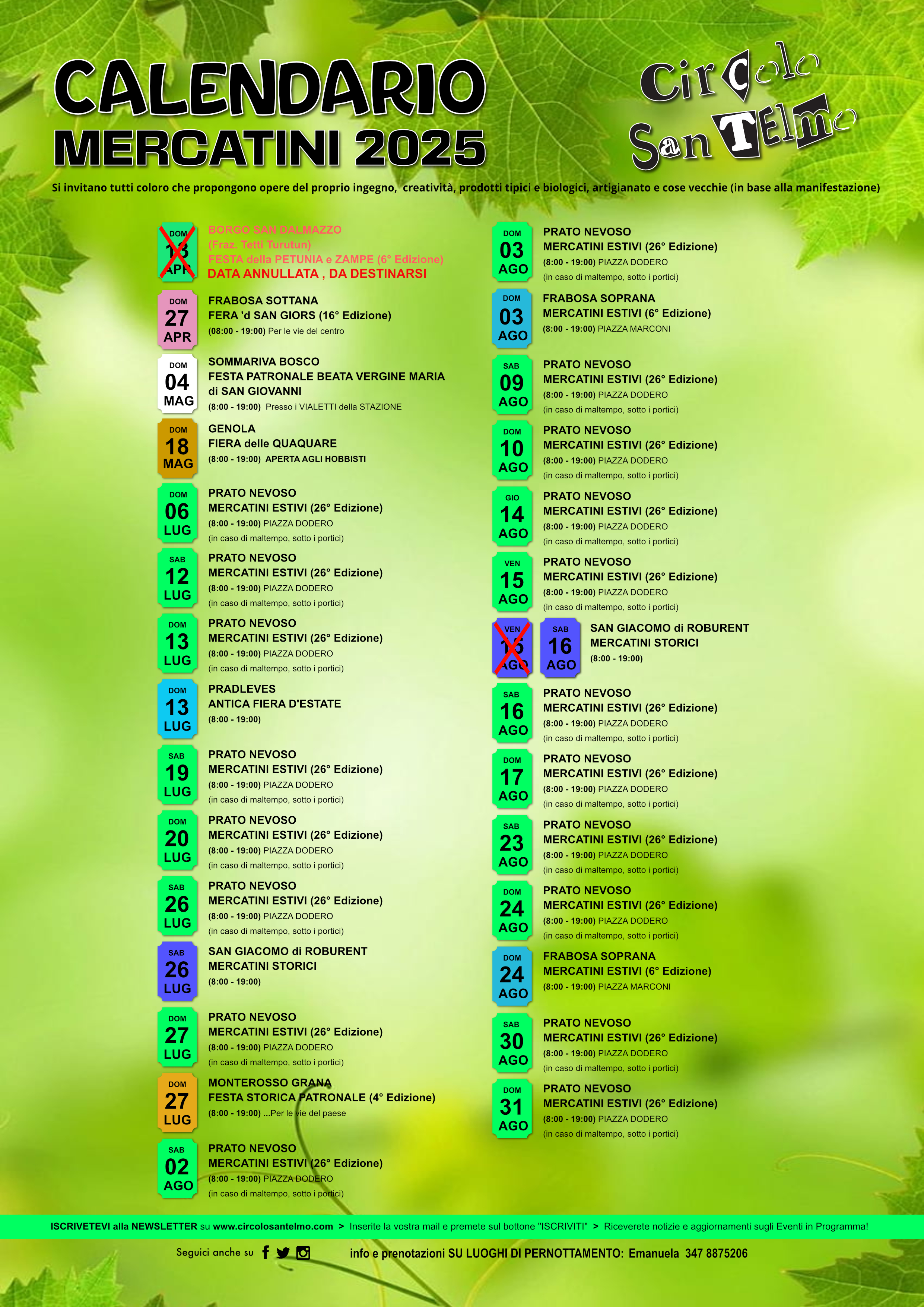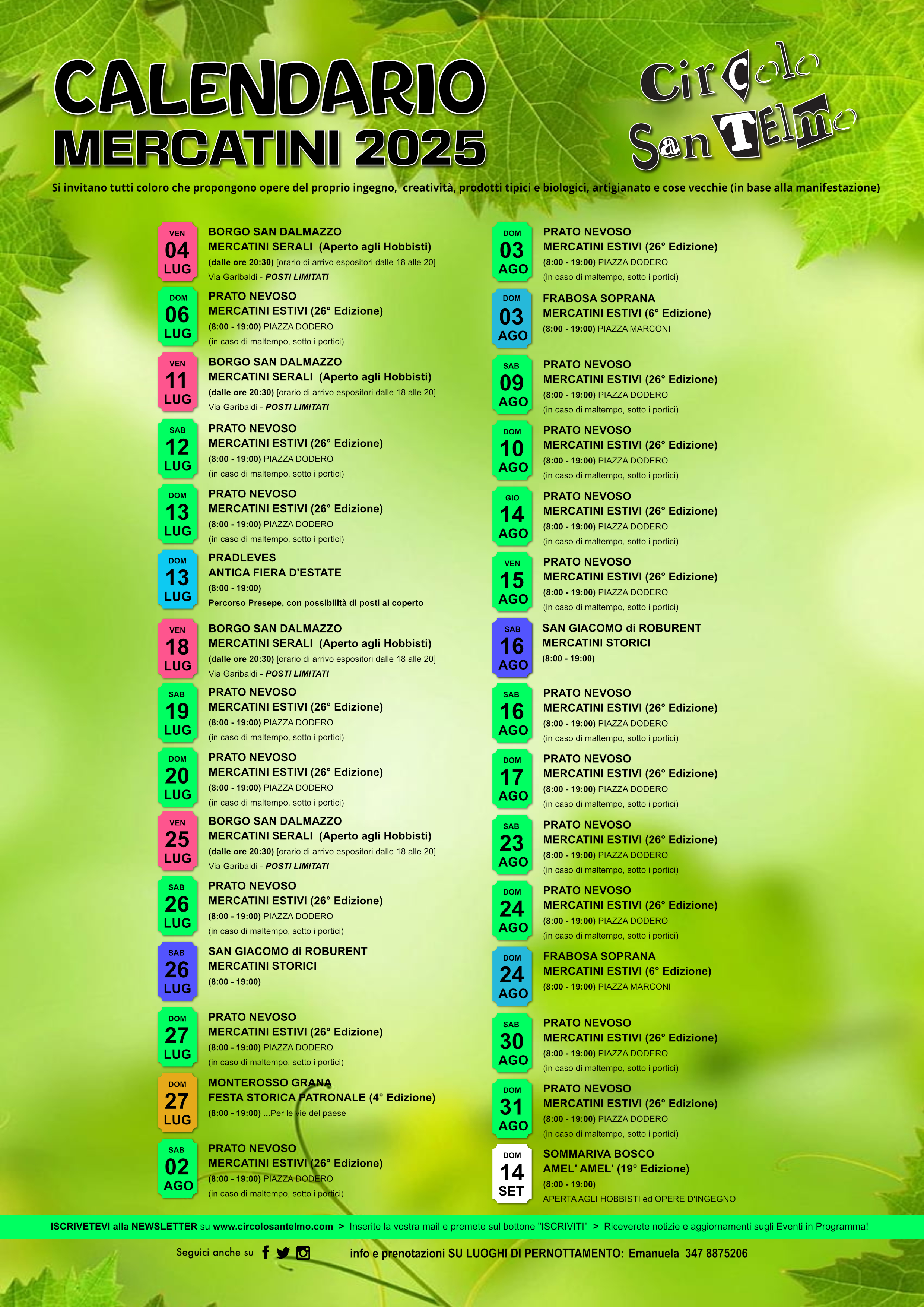 CALENDARIO MERCATINI 2025 [Giugno 2025]