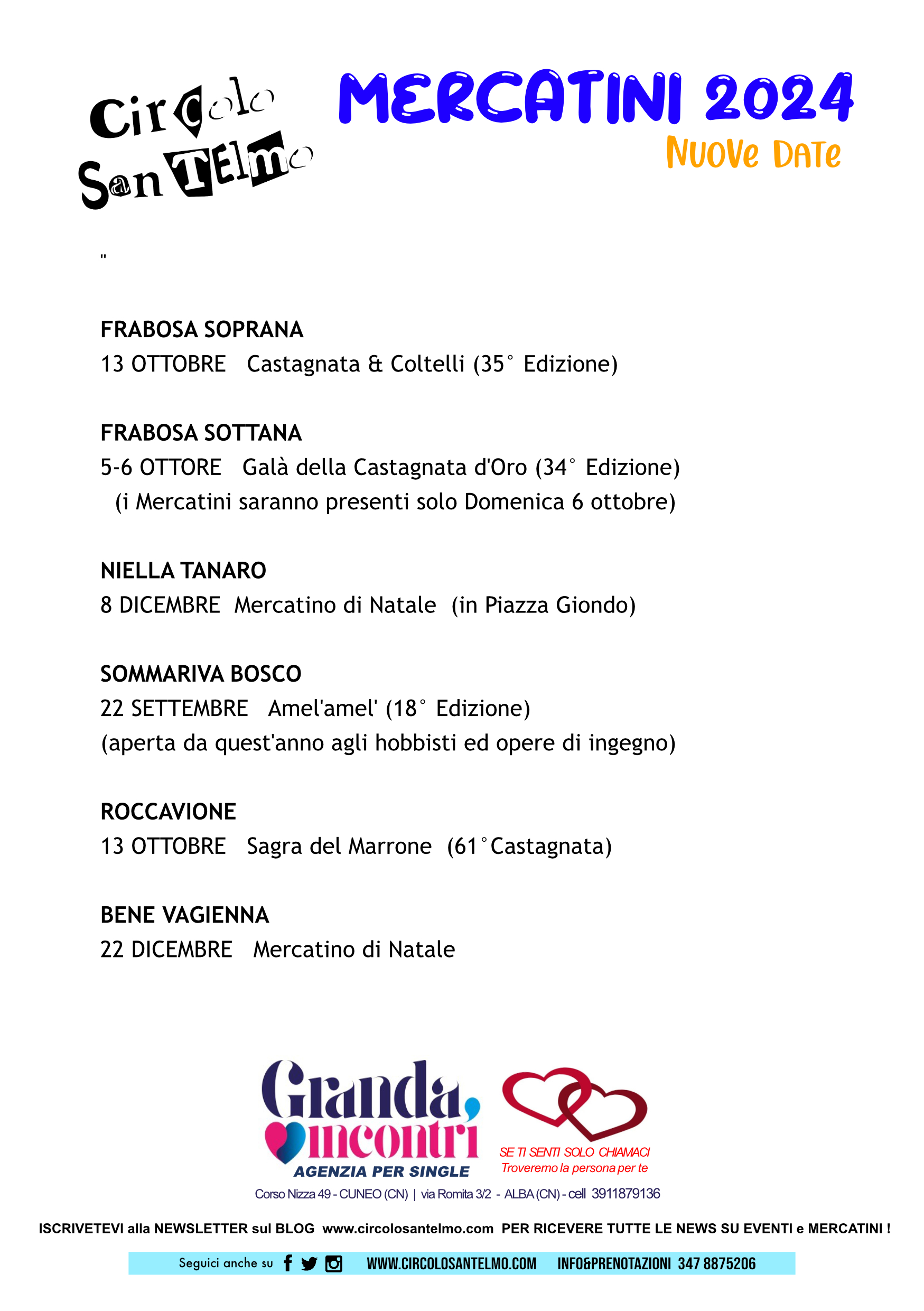 • MERCATINO di BRA – presso la COOP – 9 GIUGNO