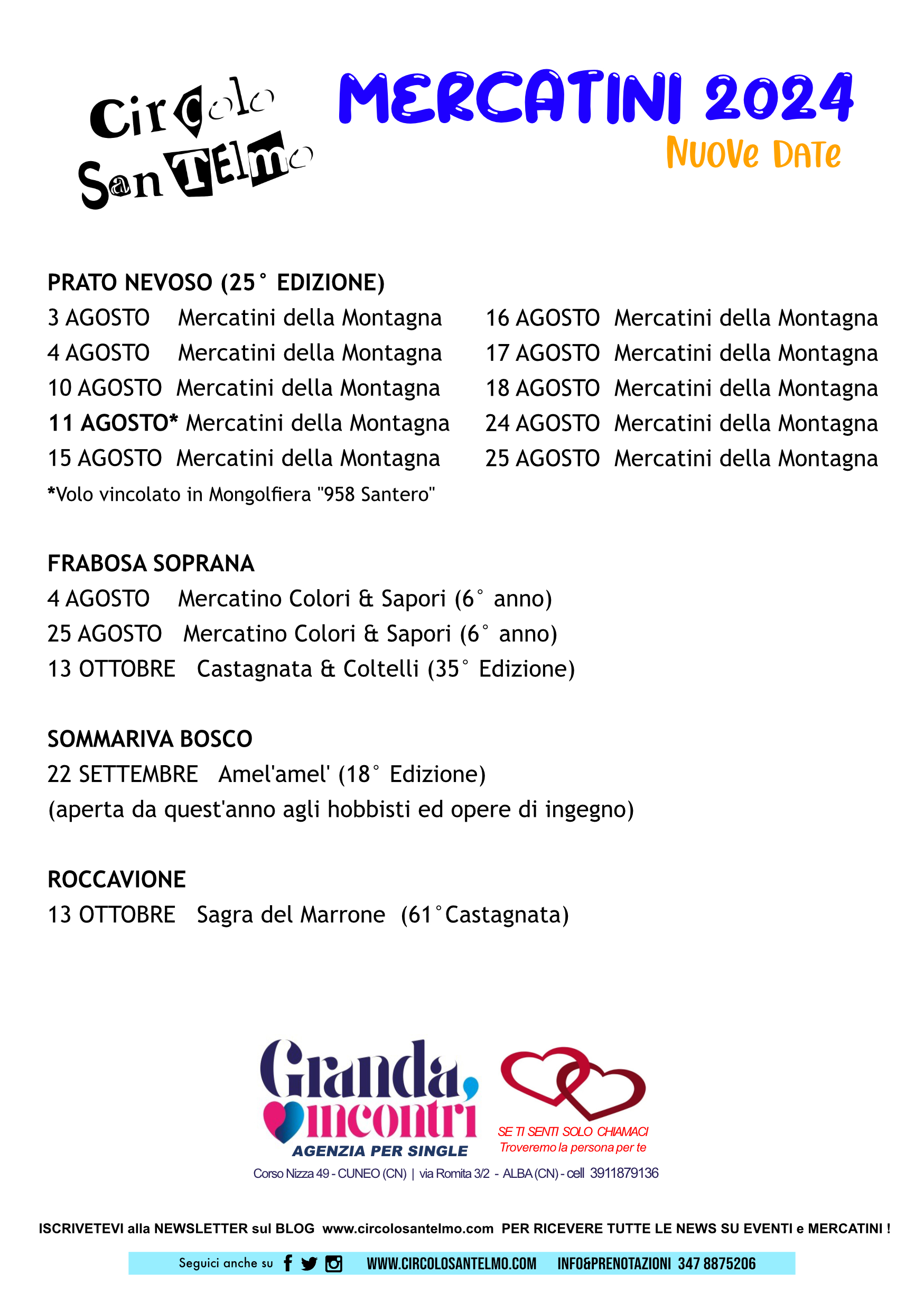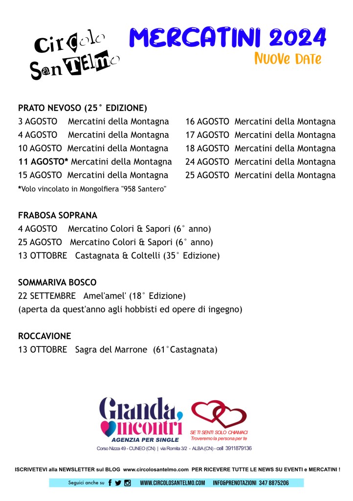 La manifestazione avrà inizio Sabato 5 ma i mercatini saranno presenti solo Domenica 6 .