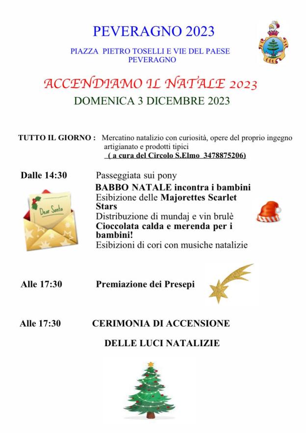 PEVERAGNO: 3 DICEMBRE 2023, ACCENDIAMO il NATALE