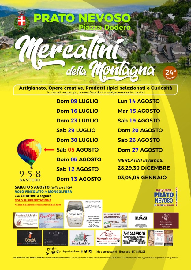• PRATO NEVOSO – Mercatini Estivi 2018